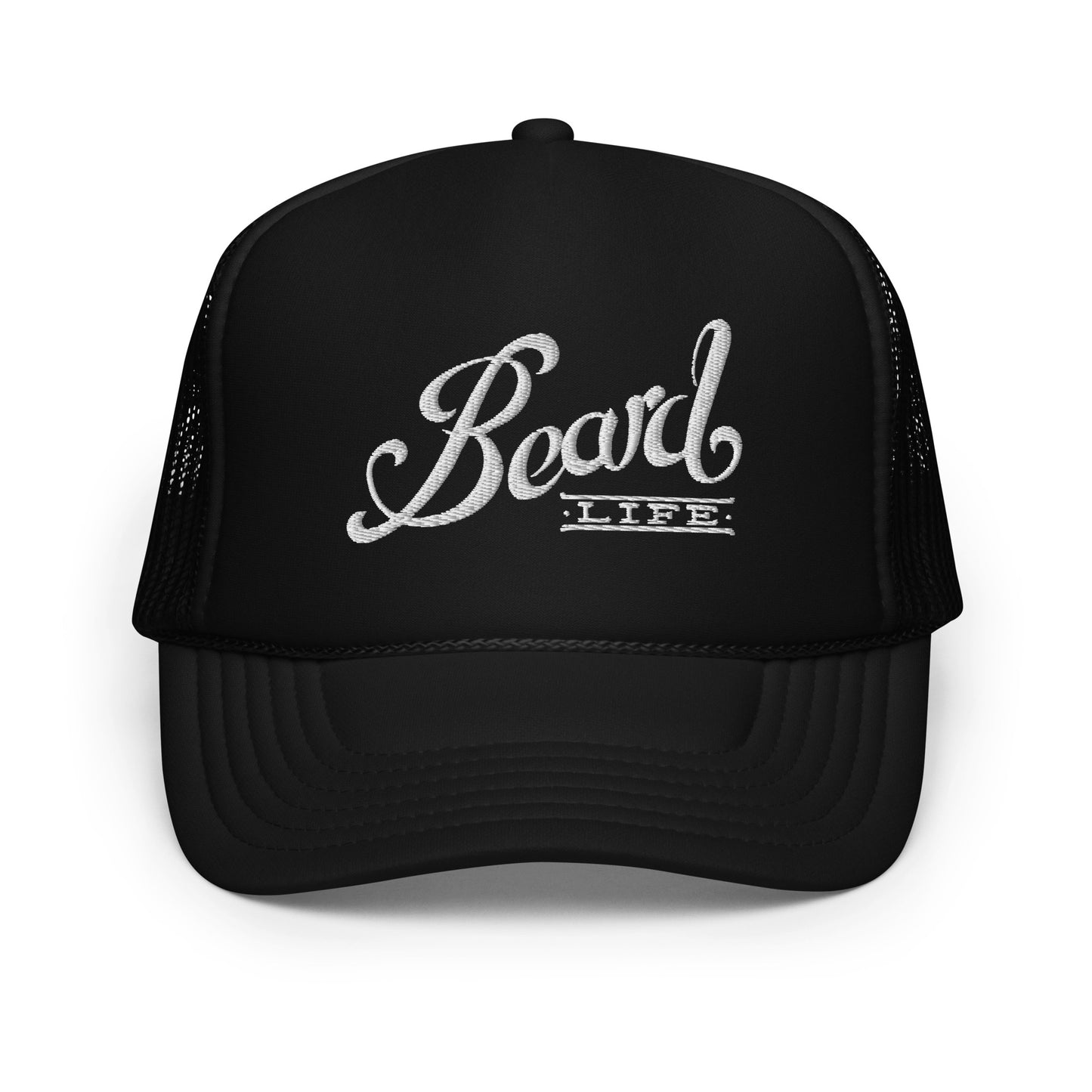 Yet another classic Beard Life logo embroidered on a foam trucker hat.